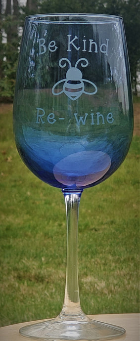 Be Kind Re-wine Blue Stemmed Wine Glass with Bee